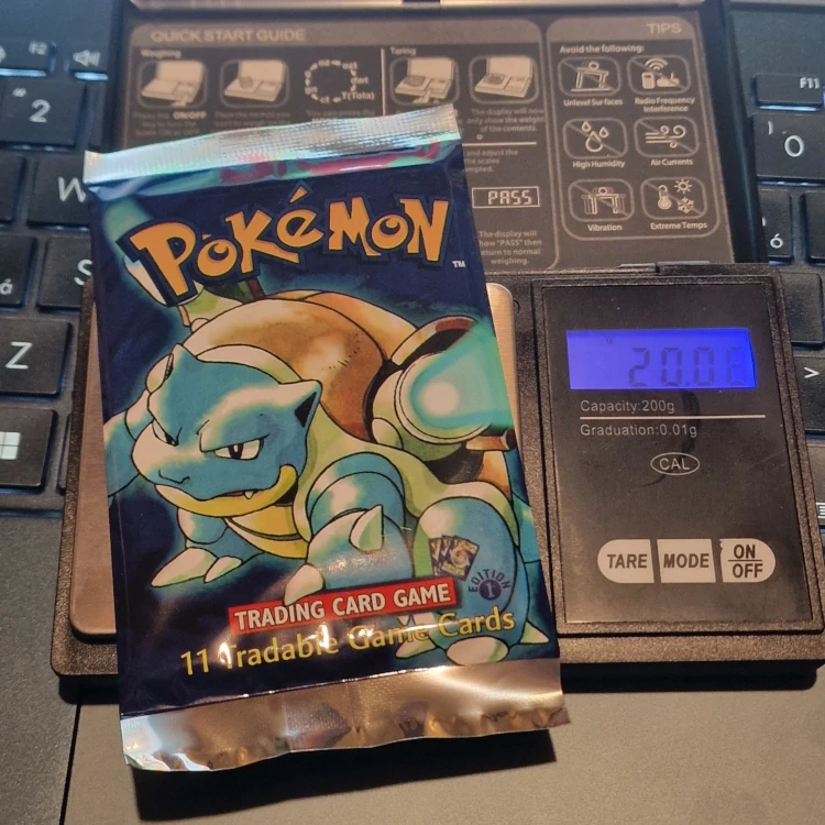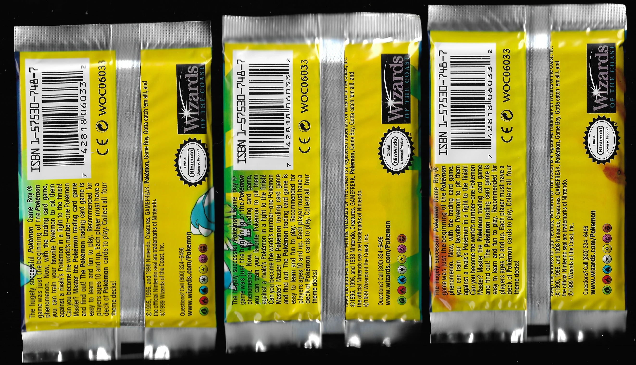 Upon further inspection, the back seal is too thin and incorrect. The artwork is also slightly blurry with off-set colors and brightness. The back text looks actually clearer than it would appear on an original 1st Edition pack.