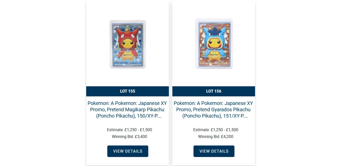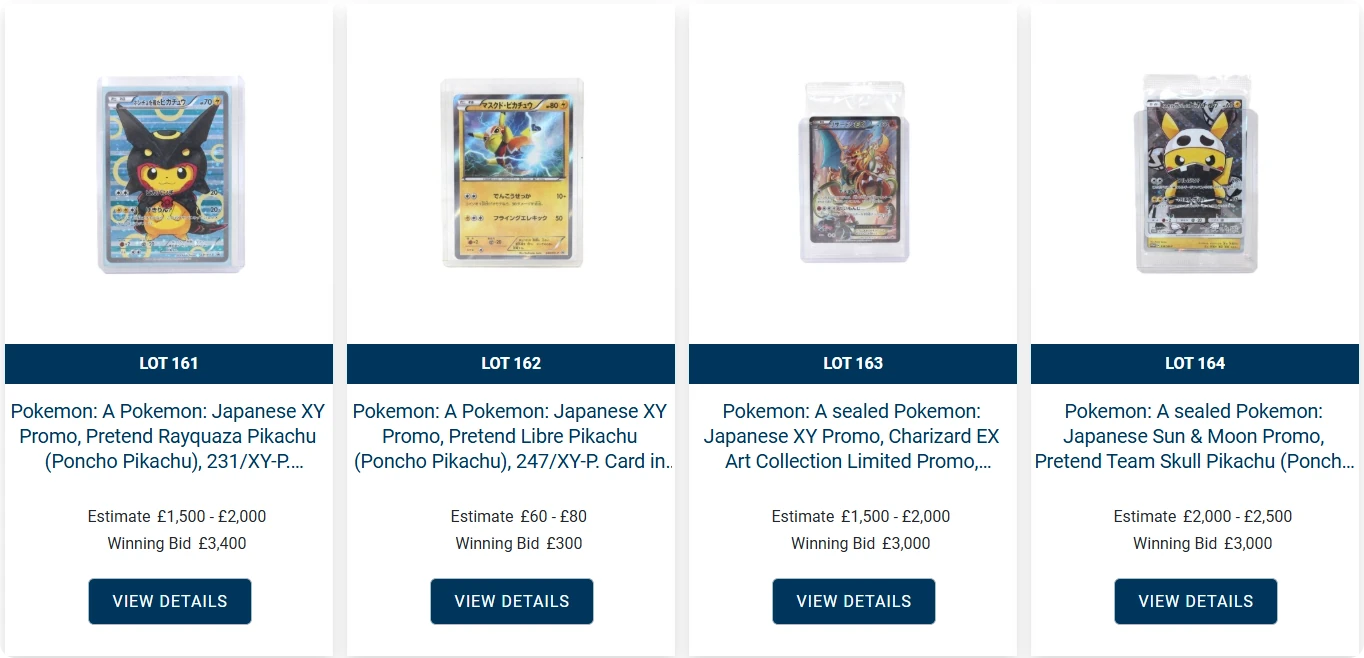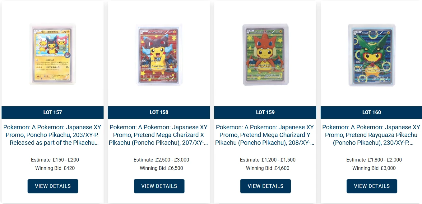 Speaking of Poncho Pikachus, there were a handful up for auction too, and they achieved what I would consider high prices.