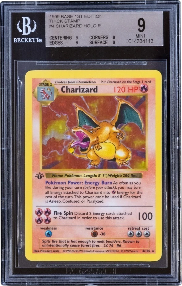 Interestingly enough, the first lot was the most expensive they had to offer: a BGS 9 1st Edition Shadowless Charizard, followed by a complete PSA 9 set of 1st Edition Jungle cards, as well as some loose packs and sealed booster boxes.